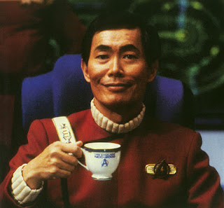 George Takei's birthday a handful of years back coincided with local sci-fi lit convention Norwescon, which I took as an ideal opportunity to release a tea tribute to my favorite member of Starfleet: Hikaru Sulu. There's a wonderful scene in Star Trek VI: The Undiscovered Country where we see Sulu captaining his own ship, the USS Excelsior. He is holding a cup of tea and it's a heart-explodingly proud moment for those of us who lovingly followed his Starfleet career. I believe I actually cried when he said "Engage" to his crew for the first time. This scene inspired George Takei's birthday blend: The Excelsior.