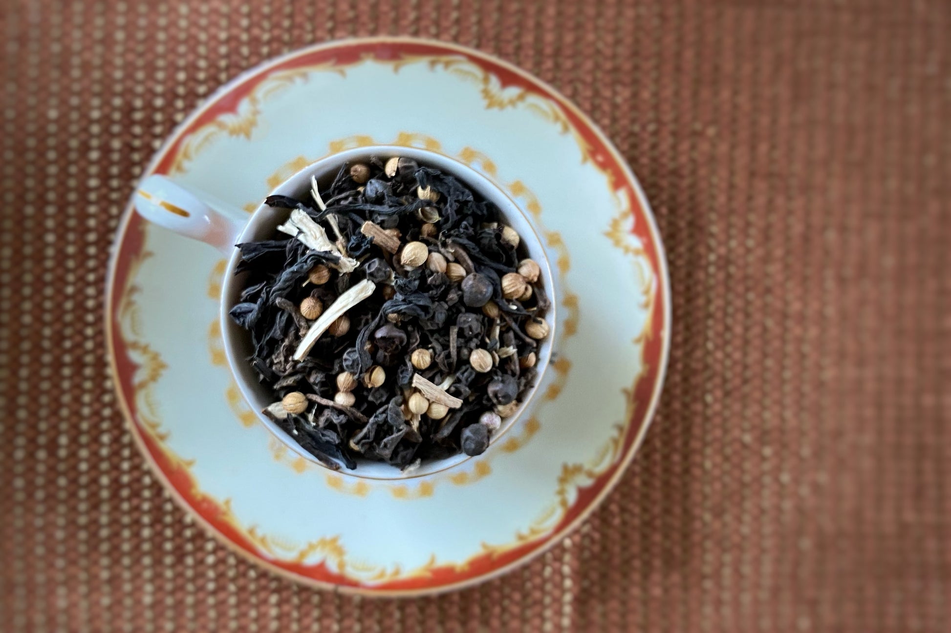 Ingredients: Aged dark tea, black peppercorn, coriander, black tea, chicory root, pine smoke