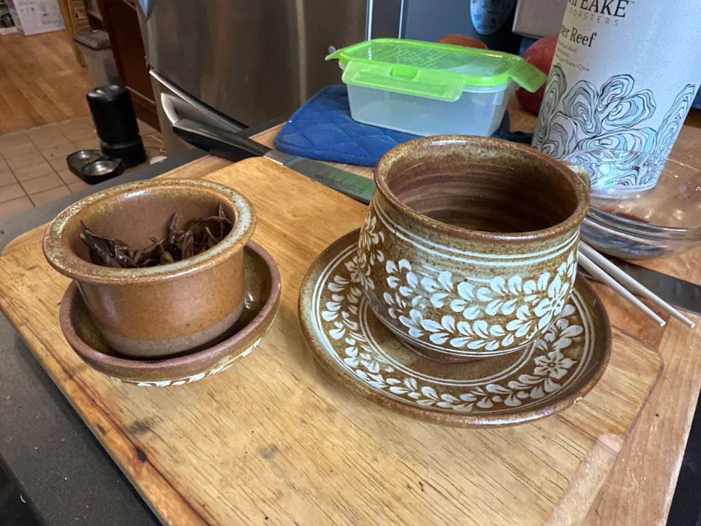 One picture is my Korean tea ware; the other compares the leaves before and after six steepings.