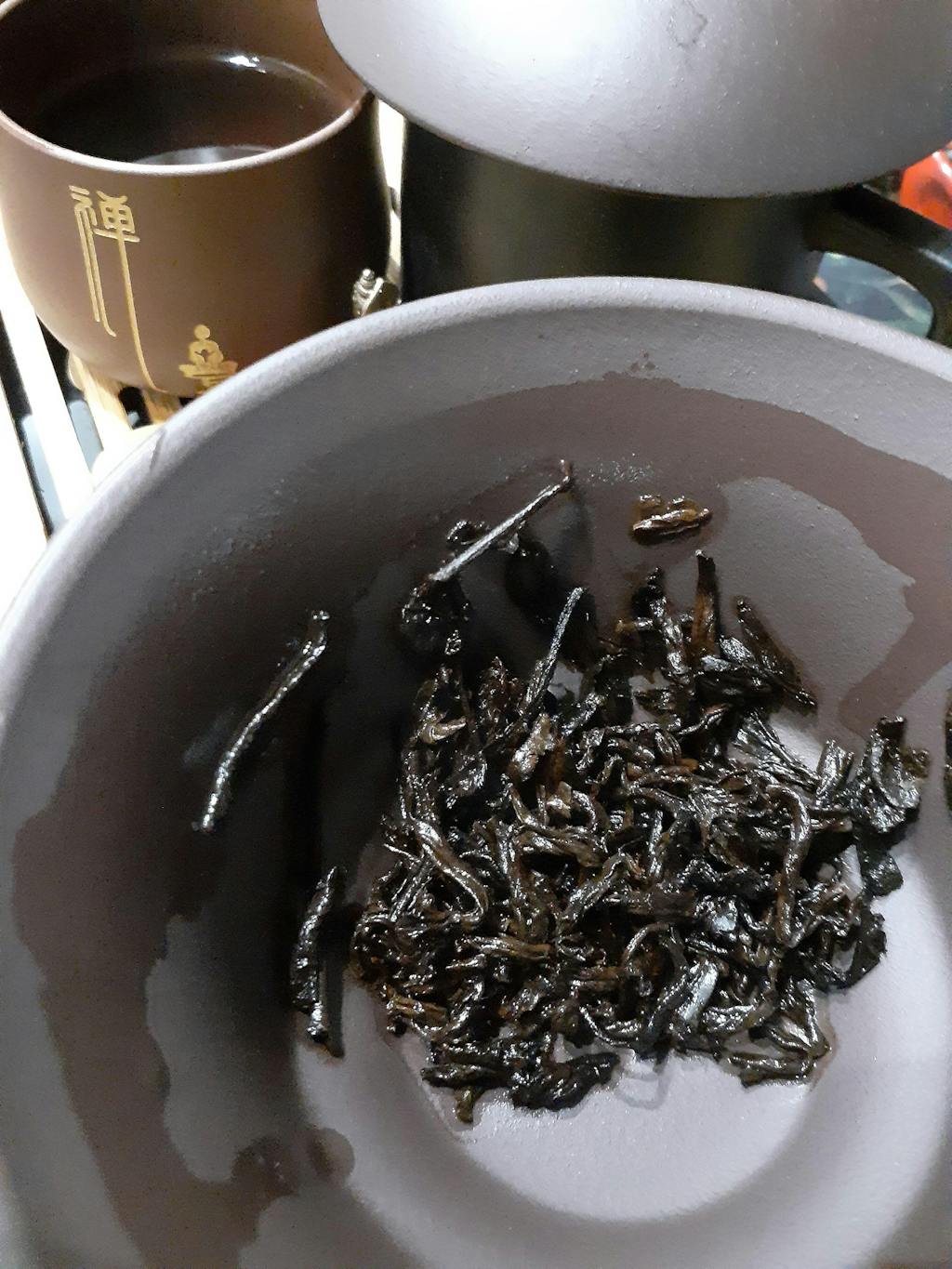 Even the second steep reveals a rich mahogany hue. Its aroma features damp oak wood and leaves, with a touch of a root cellar or cave-like scent (an almost pleasant mildew aroma).